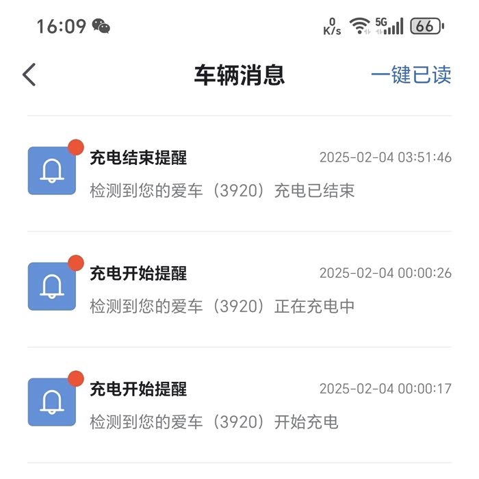 车子的充电情况 APP会来通知推送