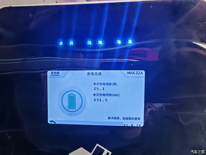 最后上充电数据,11%冲到100%,充了25.1度电,用了3个小时51分钟。