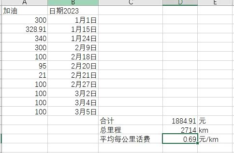 油费1884.91元,总里程2714公里,平均0.69元每公里