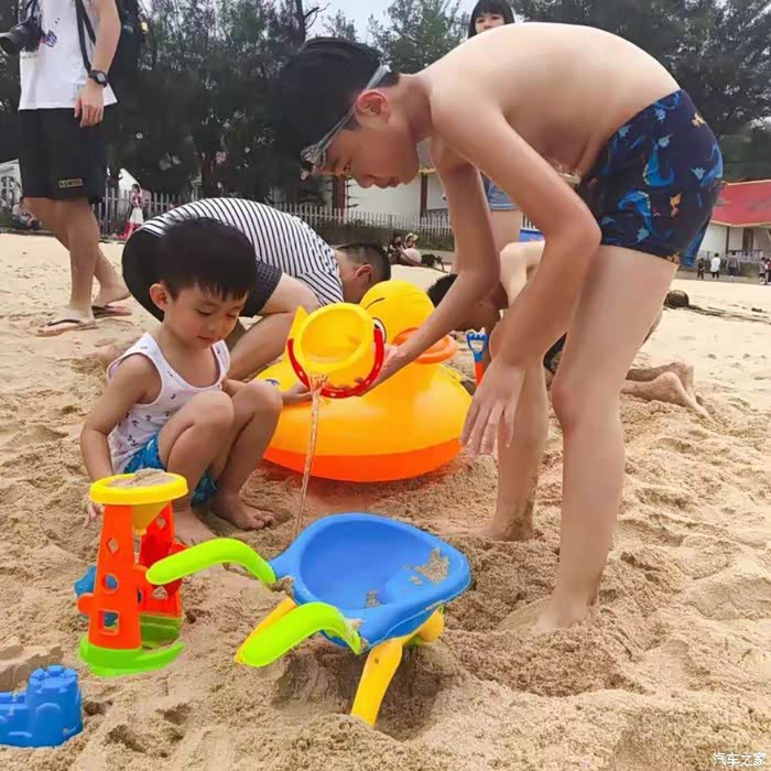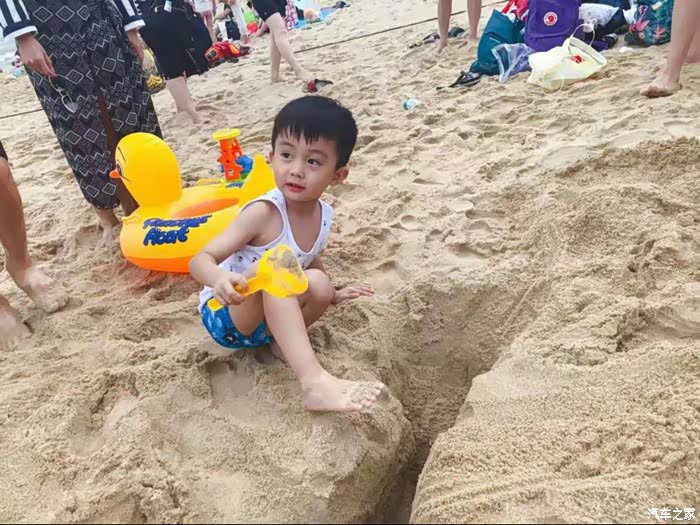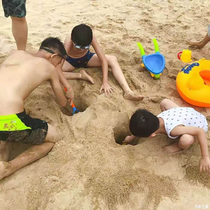 小朋友来海边,玩的不是水,是沙
