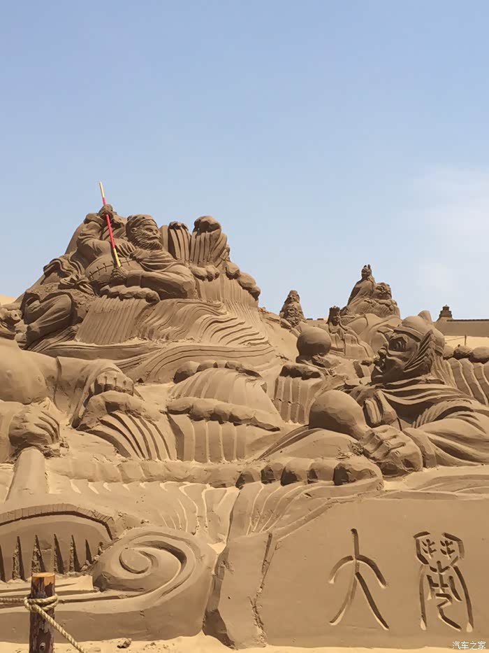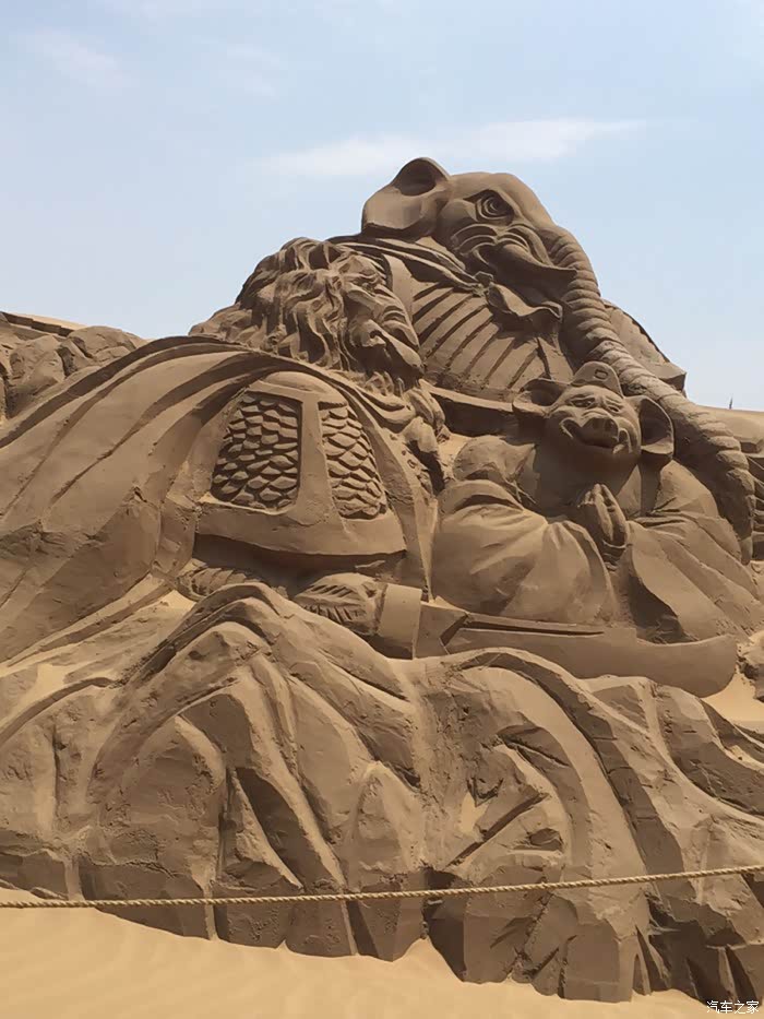 福沙岛里又是另一番景象,一望无际的沙漠里,有游泳池,有凉亭躺椅,一下子有种沙滩度假的感觉。另一个奇妙的地方是沙雕园,2017年的主题是西游记,大闹天宫,花果山,三打白骨精,流沙河,火云洞火烧红孩儿,巧借芭蕉扇等经典桥段都一一呈现在了眼前。我很好奇创作者的巧夺天工,沙漠干涸,风一吹飞沙乱窜,想要结结实实的聚在一块并雕成图案真的很难,而且还是惟妙惟肖,佩服他们。