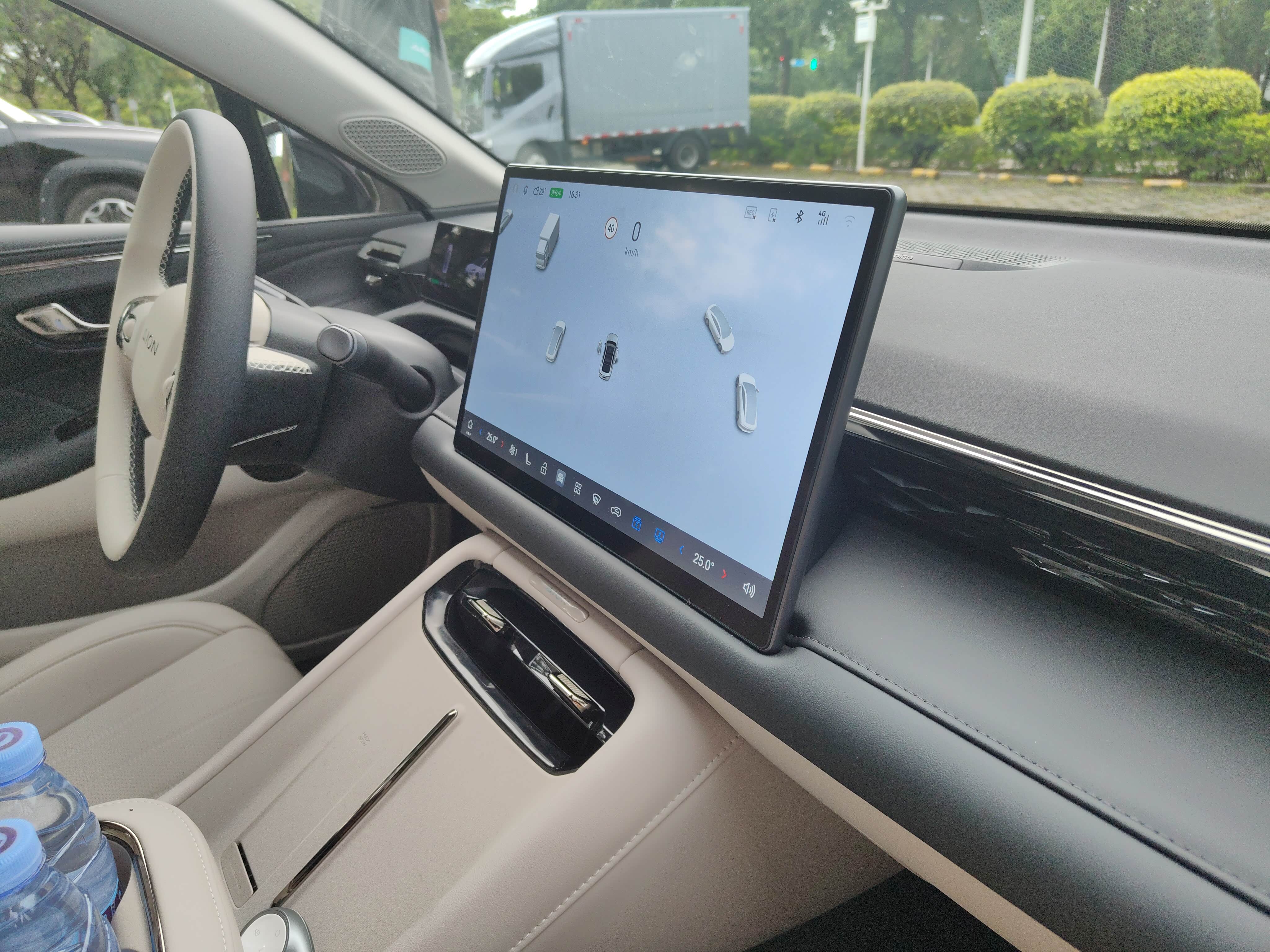 产品经理带着我们参观完展厅,便找了块开阔区域,拿着平板开始详解2025款AION RT,刚开口就勾起了我的兴趣。他指着屏幕上的座舱示意图说:“新款最大的升级就是‘一机两屏’,主副驾能同时导航、看剧,语音还能区分指令,副驾喊暂停视频,主驾导航完全不受影响。”