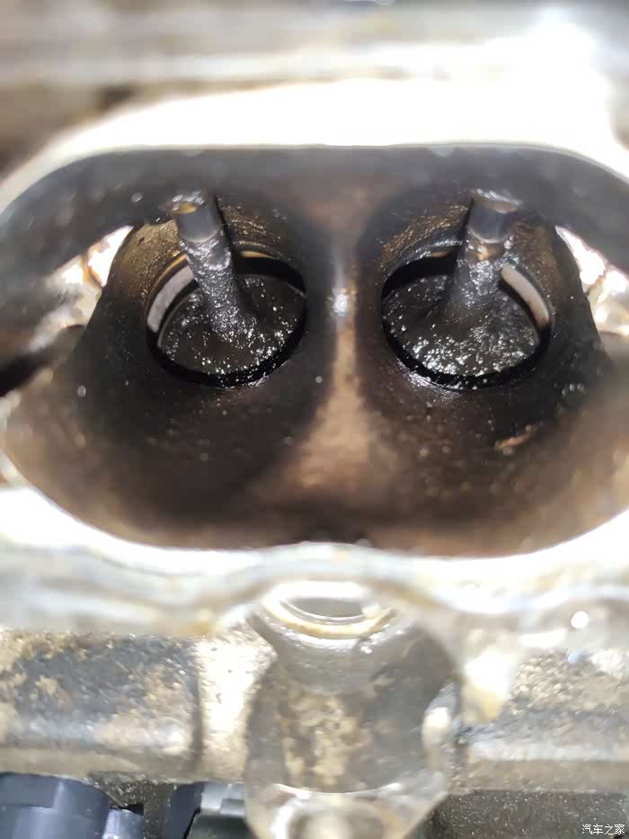 洗完气门,洗燃烧室,干冰就是这么爽,哪儿都能洗。核桃砂的话就只能洗气门,燃烧室没法洗
