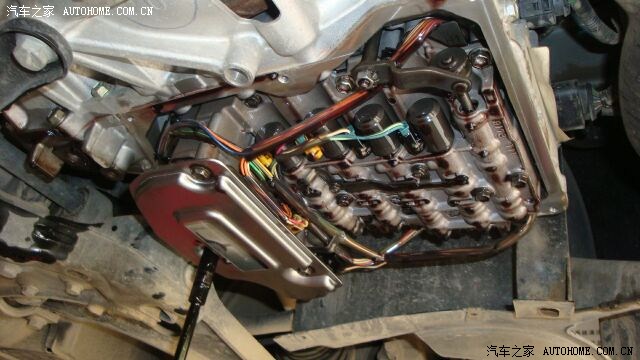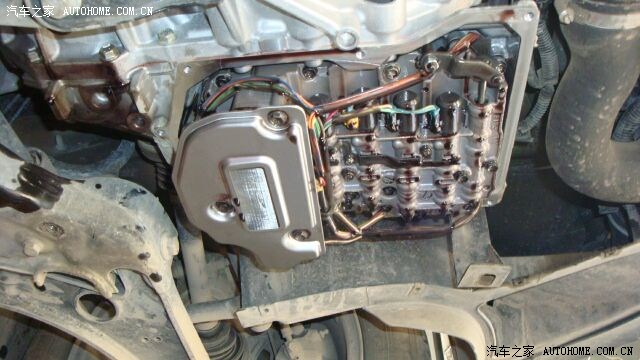 安装上全新的滤清器 ,能看见很多线那个是变速箱的控制阀体,这个在变速箱的最下部,大家在遇到路况不是很好的时候一定要小心哦。要是伤到这个部件那就需要很多钱去修了