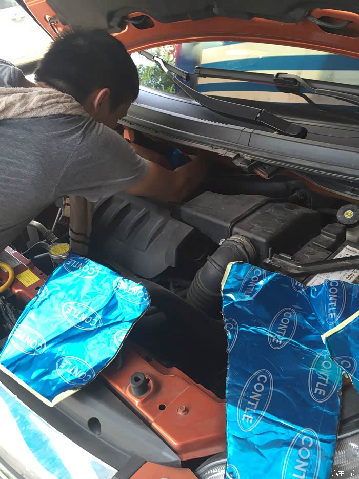 这是撕掉发动机隔音,准备重新贴