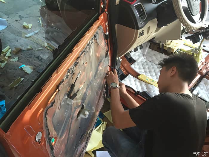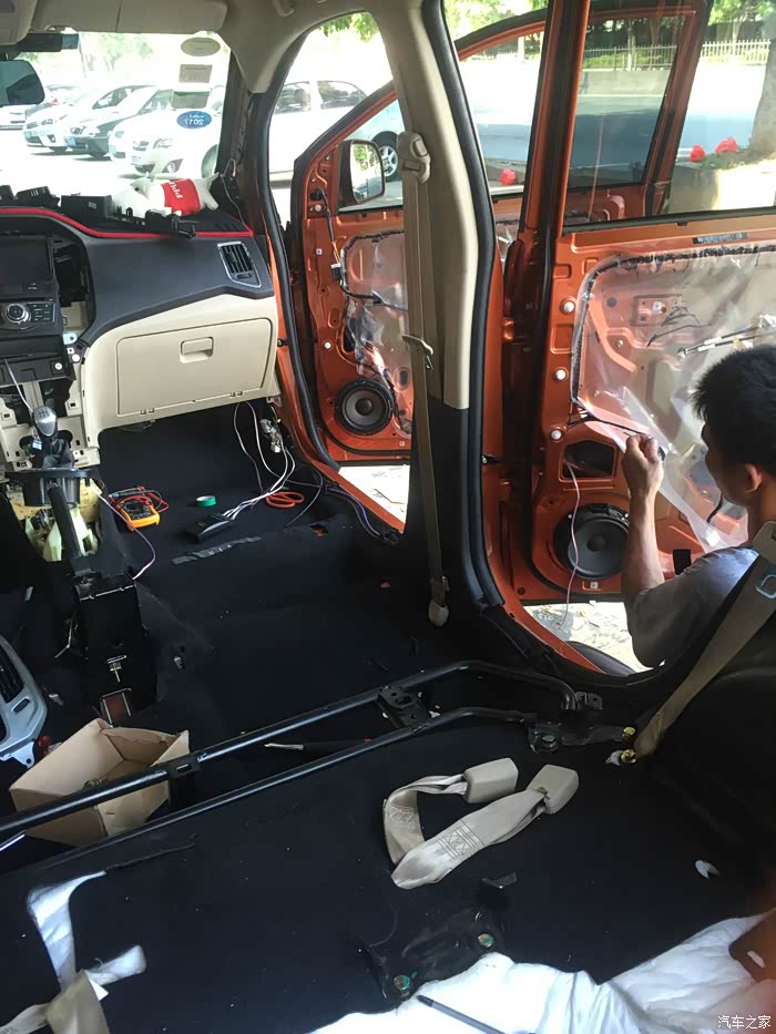早上11点开始拆,晚上8点多才完全搞好,四个师傅一起搞,不得不说这是一个“大工程”;另外如果有车友想做的话,建议装好了多试试;我的装好了,右后喇叭工作的时候车门会吱吱响,不知道是之前没有喇叭的原因还是本来就松动了。