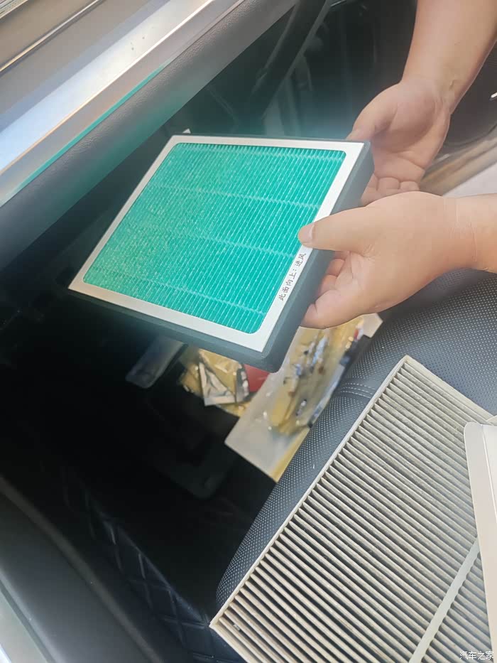 空调滤芯到了以后,直接打开副驾的储物盒,然后盒子里面左右各有两颗塑料纽扣一样的东西,把两边拧下来,储物盒就下下来了,然后剥开空调滤芯那里的黑色盖子,拿出旧的空调滤芯,然后把新的空调滤芯塞进去,再盖上盖子,还原储物盒就行了。果然如车友说的一样,更换空调滤芯太简单了,看看旧的滤芯,上面还有一片树叶,都是灰,够脏的,这东西也不贵,感觉效果不好的时候就自己买一个自己换,比开车去4S店方便多了。但是自己换了以后,那个保养中心的提醒数据还是消不了,只能等哪天有空的时候再去4S店再次更换。坦克400Hi4-T更换空调滤芯就是如此简单,你学会了吗?