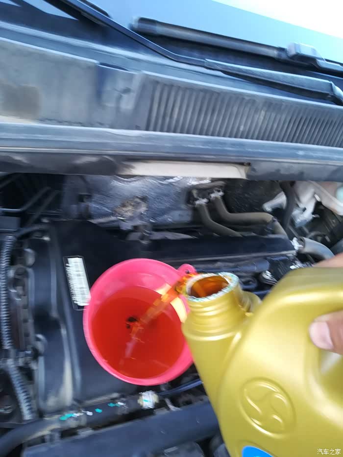 4升新油,机油尺勉强一半。不过,这油挂齿不错,上锅纯牌机油尺上挂油很少,是好还是不好