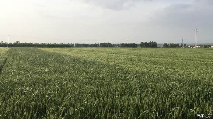 片片的麦田。绿油油的。