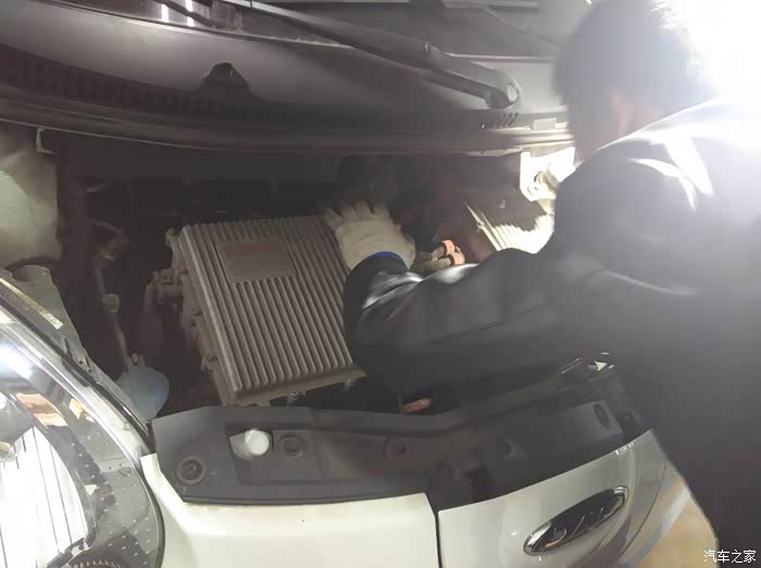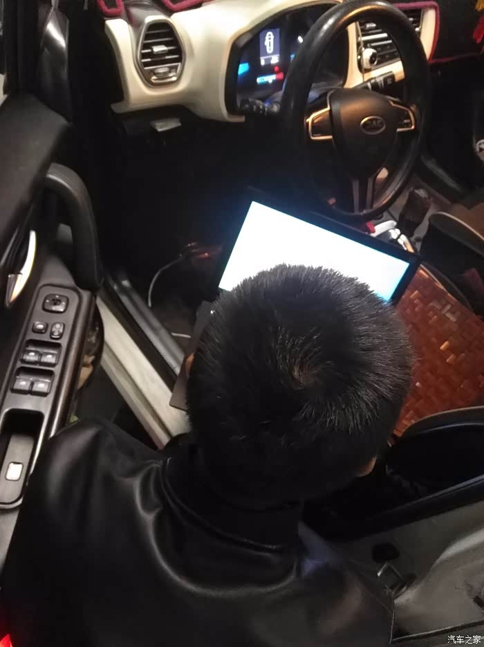 保养大神在认真地检测车子,电子屏,方向盘等等。