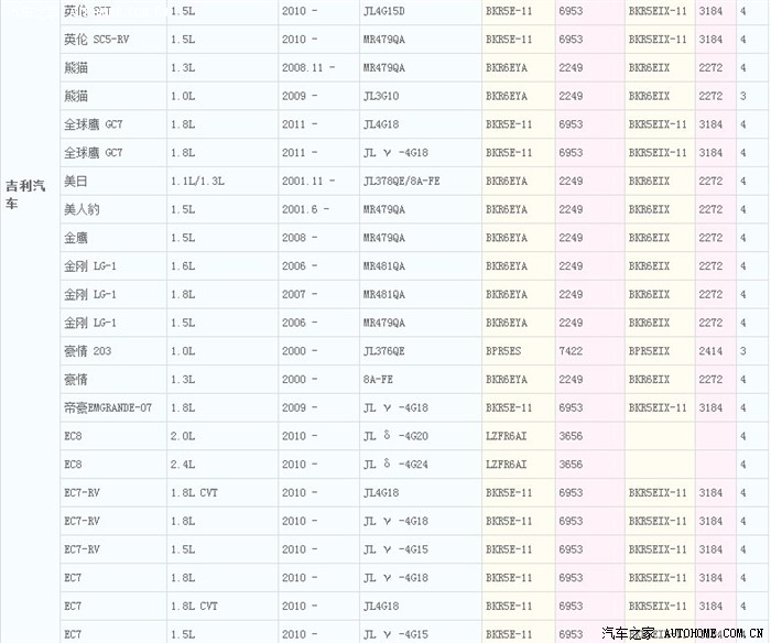 NKG铱金火花塞介绍和官方推荐型号对照表