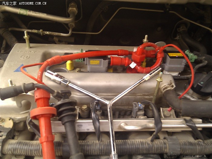 装上的效果,力爽线太长,发动机盖盖不上,最后决定退货,换五芯分缸线