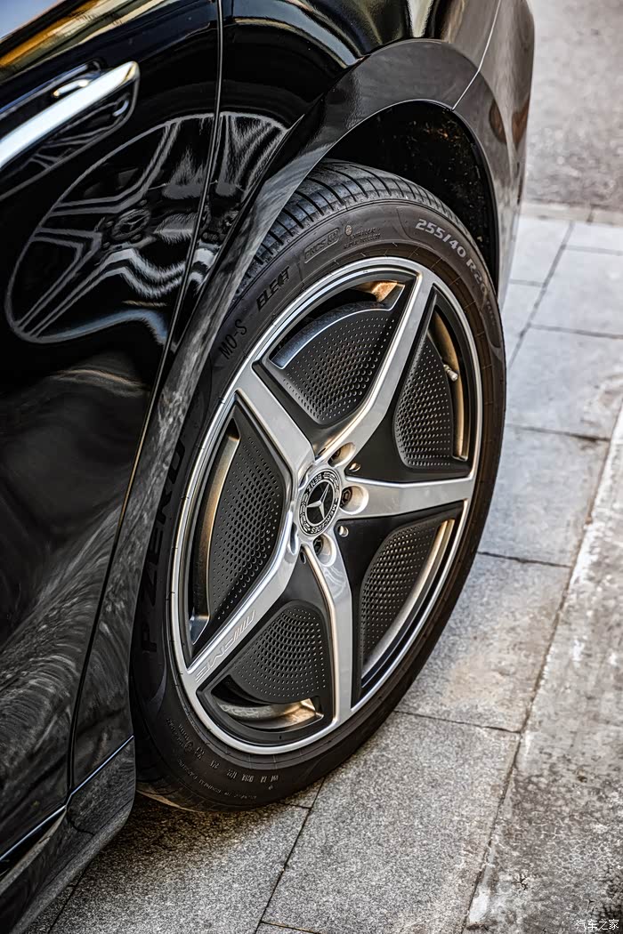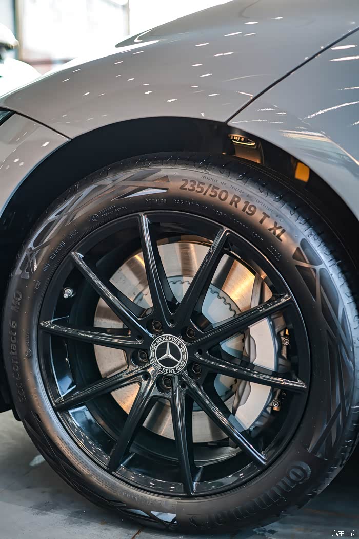 黑色轮毂造型犀利(入门级),张弛有度,入门版为19寸轮圈,高配版为20寸轮圈;配上马牌轮胎,这种主打静音、舒适的轮胎,让奔驰原本优秀的行驶品质更是锦上添花。