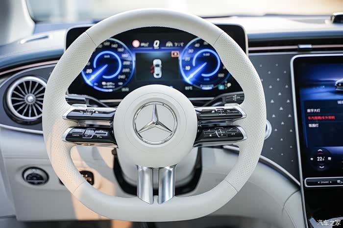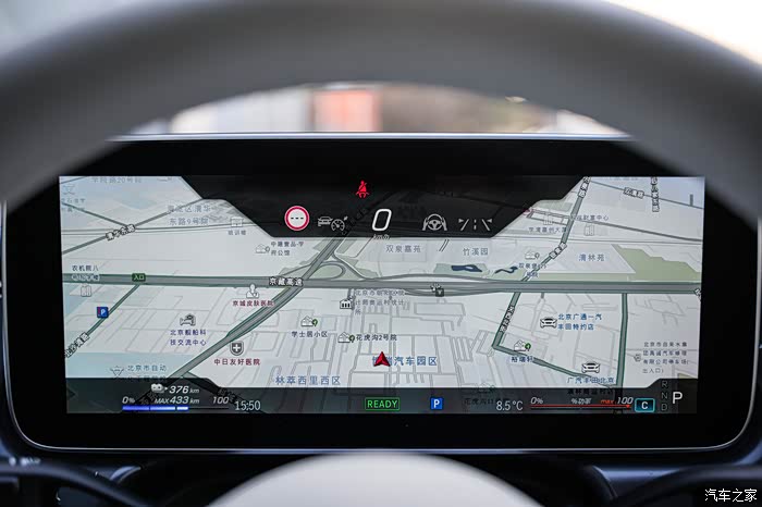 车机方面,配备NVIDIA芯片,并且使用与EQS相同的“零层级界面”,常用的功能都会出现在高德定制的AR导航地图为首的主页上