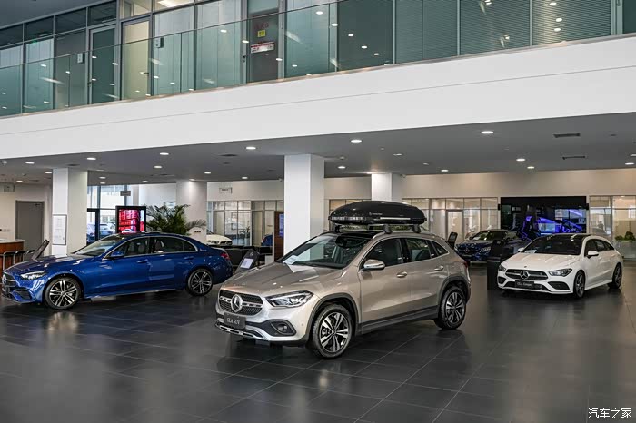 展厅陈列着许多奔驰当下的畅销车型,例如:GLC,C级,E级;这些传统燃油车目前依旧是奔驰销量的中流砥柱。