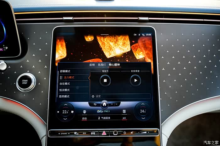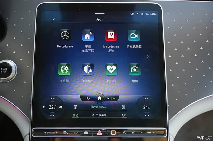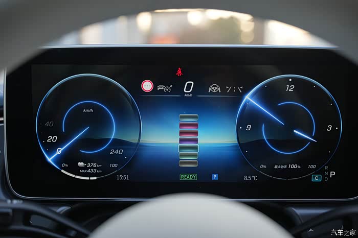 进入车内,展现在我眼前的是一套12.3英寸的LCD仪表屏与中央12.8英寸的OLED中控屏,这样的组合如今已经是新一代奔驰汽车的标配,这两块分辨率最高达到210ppi和201ppi。先行特别版车型还配备了带背光的星辉饰板,在夜晚时可与前格栅相互呼应。前方还有一个摄像头,可以用来自拍,视觉感比较温馨和高雅,符合奔驰豪华的定位风格。