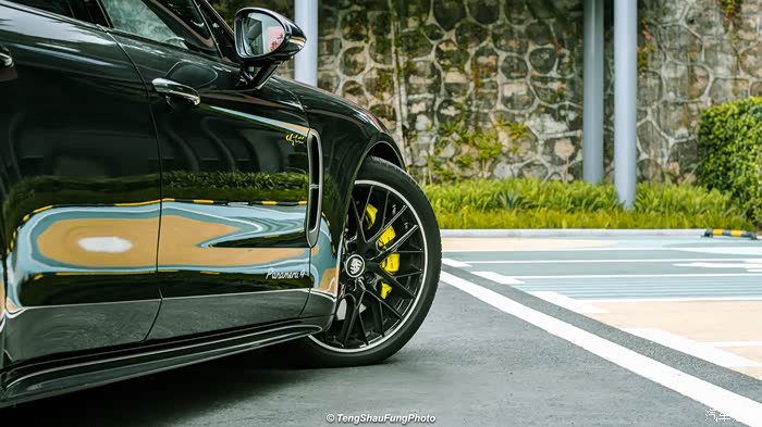 这款轮毂也是特别适合Panamera的,银色亮圈搭配大尺寸六活塞卡钳,