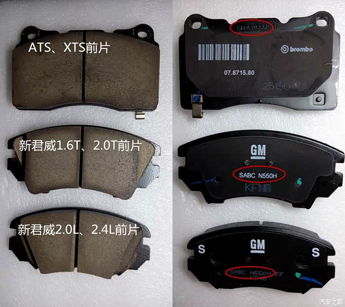 新君威刹车片和凯迪拉克XTS刹车片对比