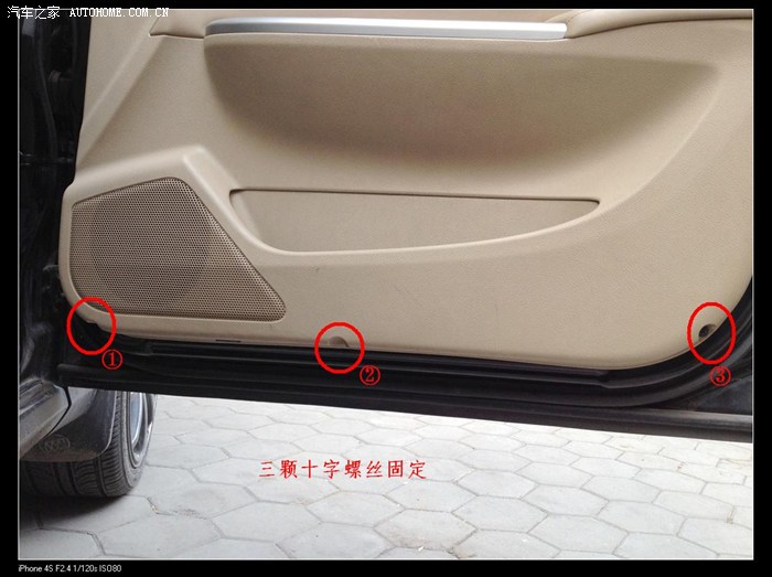 ④ 车门内饰板下方有三颗螺丝(后门是两颗)拆下;