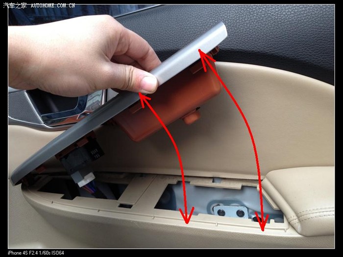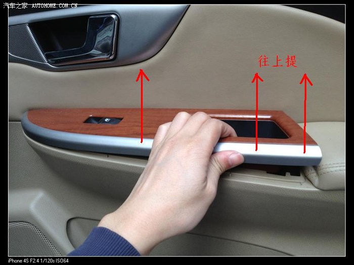 ⑥ 取下车门内饰板要先从下方往上方掀起,这样车门开关抠手那一块容易分离;