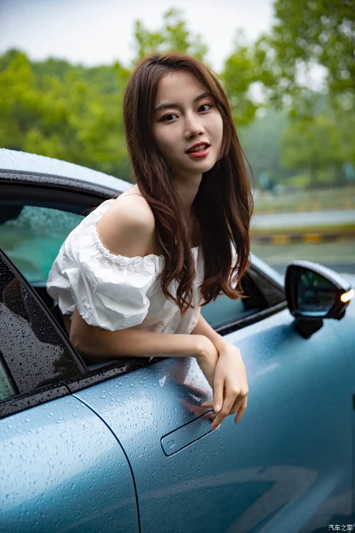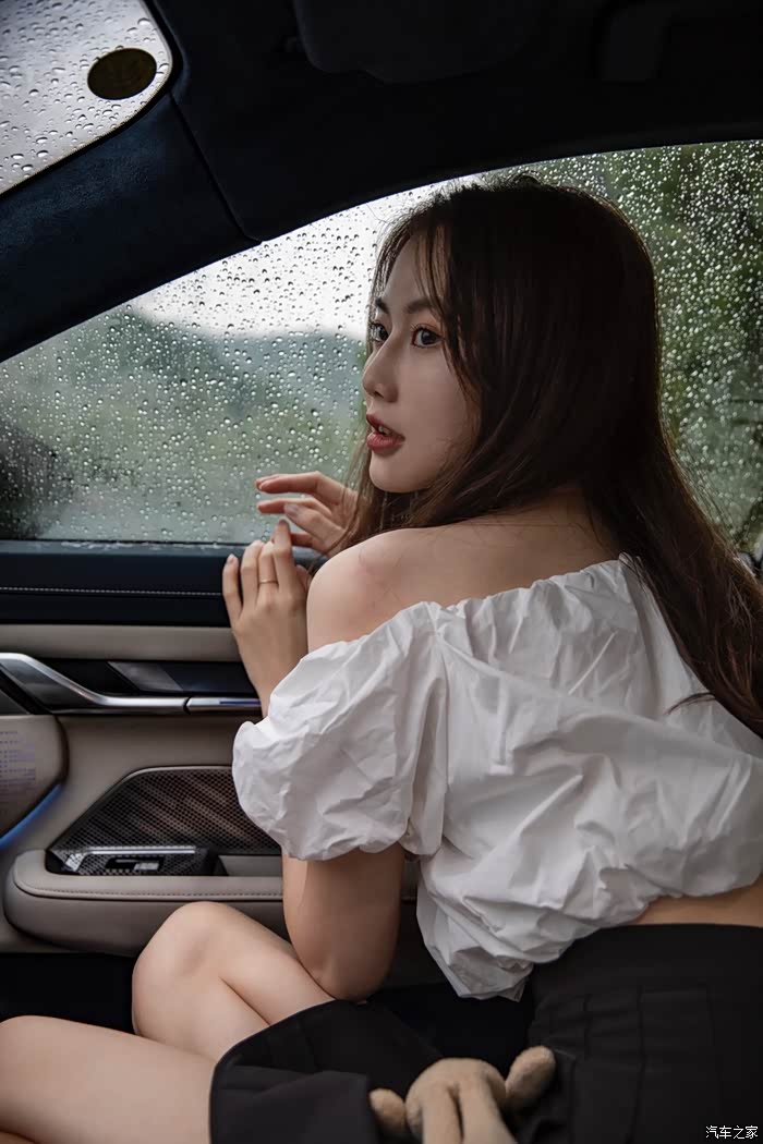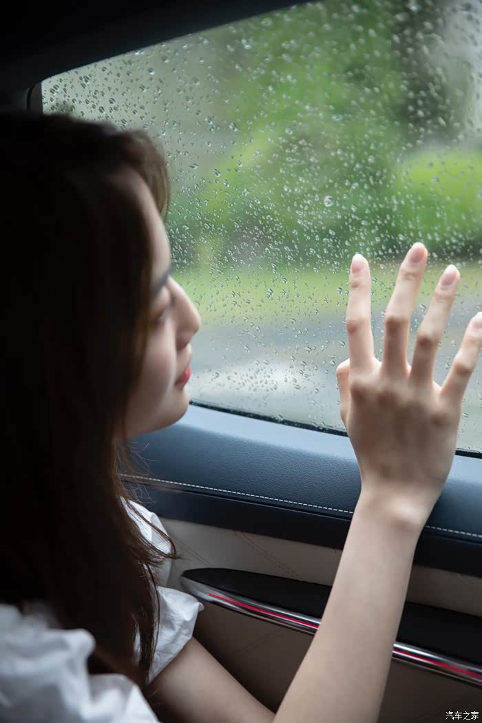 在微微细雨的烘托下,上演出水芙蓉的场景,再次告白无框车门,高级感拉满。