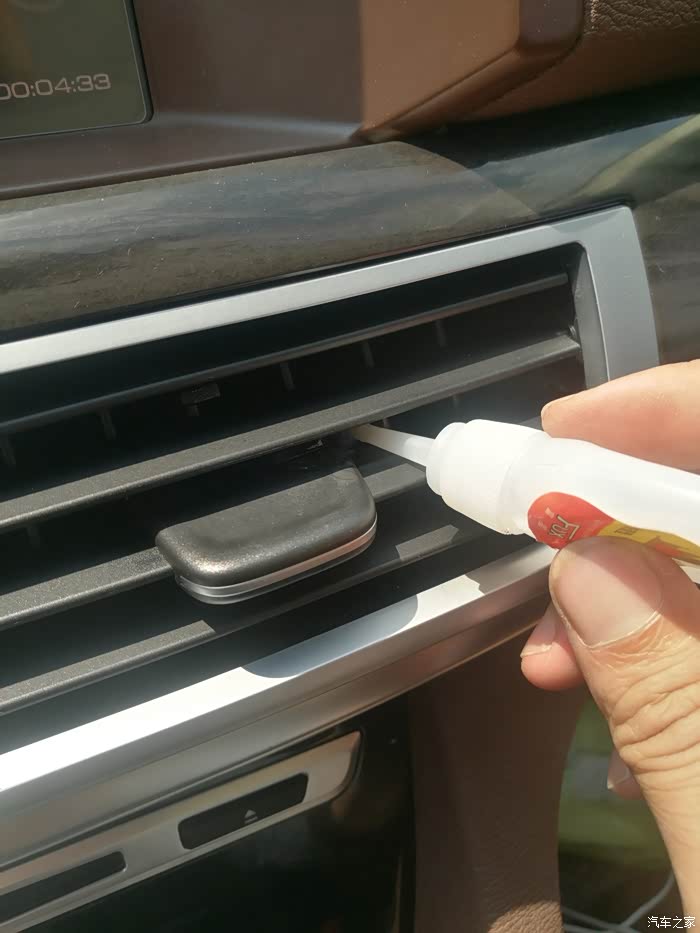 也不知道怎么回事,一上车这个东西掉下来了,前一天还好好的,就洗了个车,我记得我自己一般都是很温柔的,怎么就断掉了,赶紧发信息给4S问售后看有没有这样的配件,4s的回复是没有单独的配件,必须得换整套出风口,这样好贵的,想了想这也不经常用到的东西换整套也不划算,索性就自己想办法看能不能粘上去~