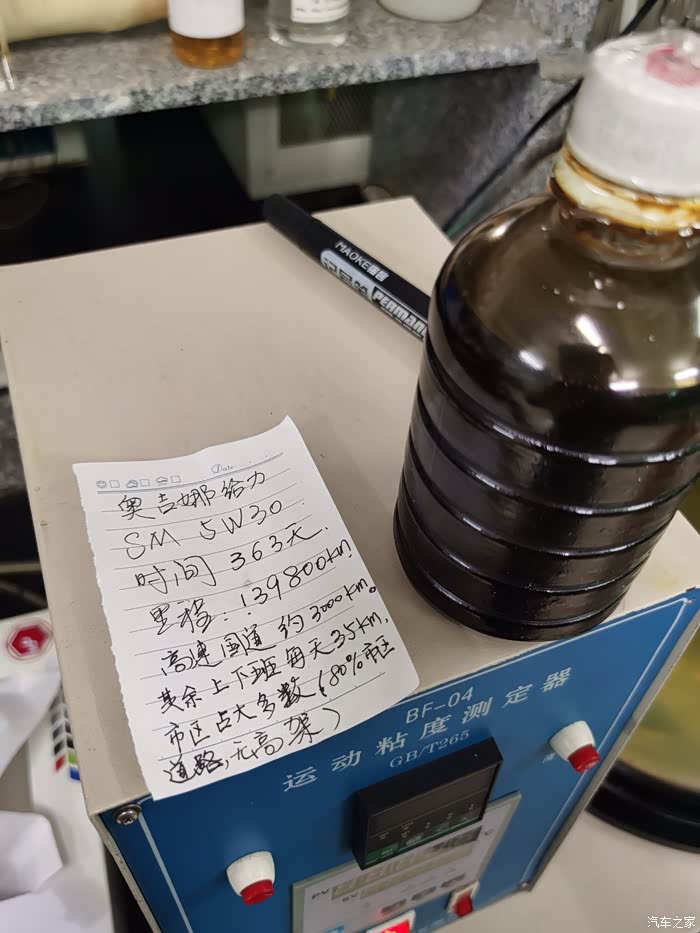送检的旧油,写成139800了……实际是13800公里