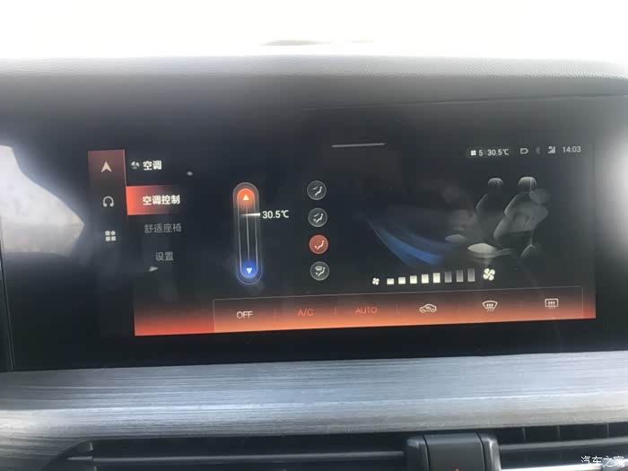增加了选装包的车型中,多了座椅加热的功能,我找了半天没有找到座椅加热的开关,左右车友会的小伙告诉我。座椅加热只能在中控屏中的空调设置中打开~!温度有3个档位~!这个是我有点不能接受的,如果在开车过程中想要打开座椅加热,这个有点法索了~!还是实体键操作来的方便~!