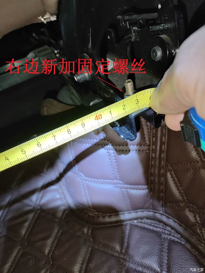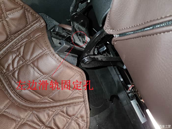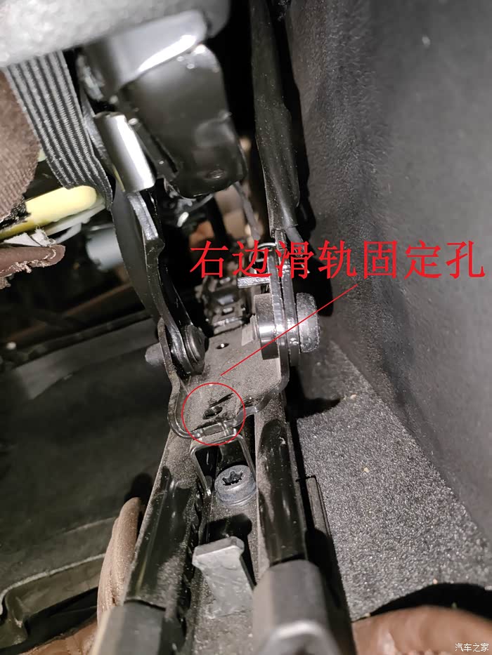 座椅左右滑轨上都有现成的孔,正好用于固定