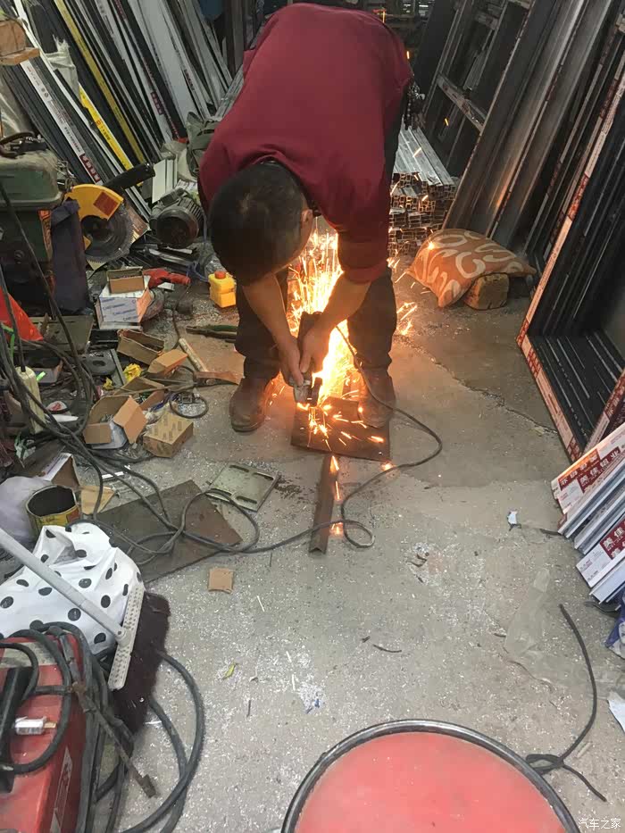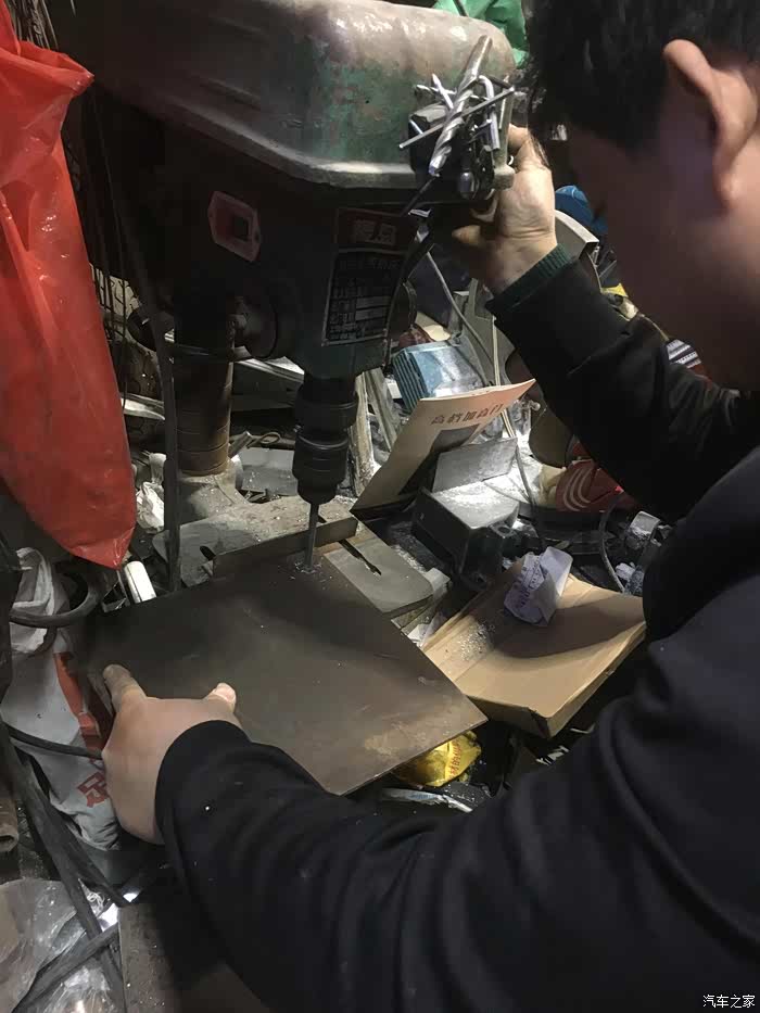 因为转接片制作需要用到切割机与台钻,索性来老丈人店里现场制作安装了。