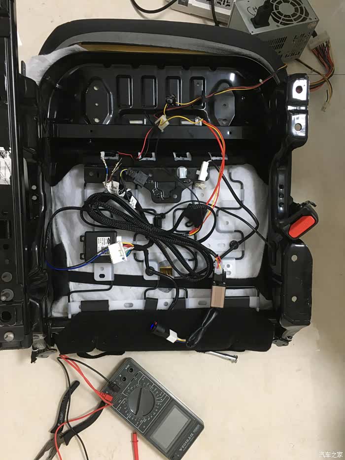 拆下原来的座椅后,进行电动座椅的总电及座椅加热的总电布线工作。