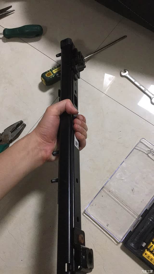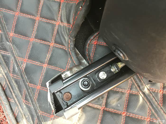 所需要的螺丝,可能大家的不同,我的就是这些。长度问题是考虑到原车螺丝是25的,加了那么多的垫片,且副驾驶因为检修开关问题,垫了4个1cm的螺丝帽太高,否则会碰到轨道。所以螺丝的长度尽量长了切,也不要短了,否则会减弱强度。