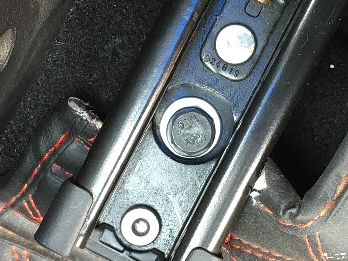 接座椅轨道端用沉头螺丝,上面加螺帽与垫片跟弹簧垫片固定。另一侧与地板的螺丝位置固定,建议大家将原车的10.9级螺丝更换为12,.9级高强度螺丝更为安全一些,毕竟位置发生了改动。上螺丝时一定要安装垫片加弹簧垫片,防止滑丝与松脱。如果不放心,轨道侧可以将装接片焊接上去。