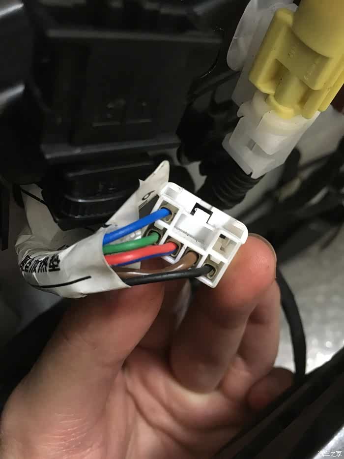 拨开找到黄色线跟黑白色线,这两根是座椅的加热丝线,可以用万用表量一下阻值。