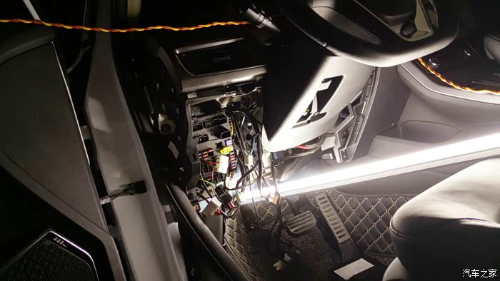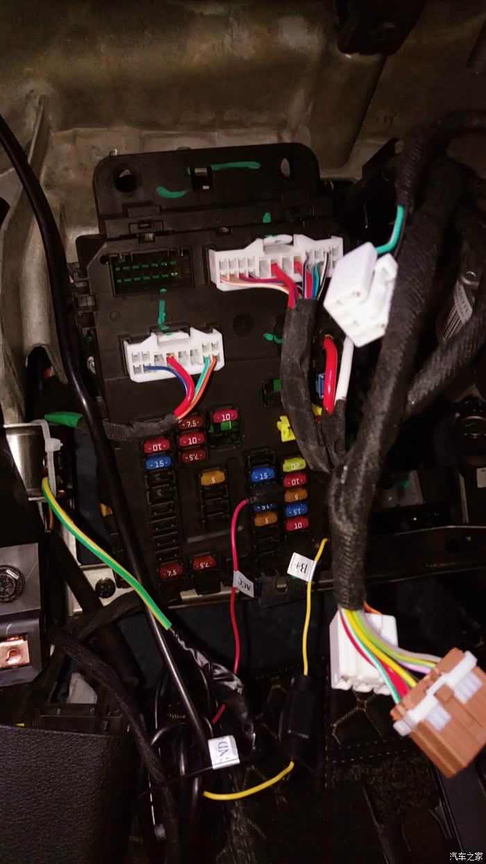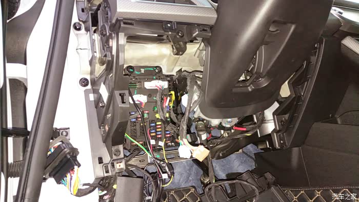 装好了2边的电机,等待我们的就是第三个难点了:链接线路和行车电脑主机,而且这个难点让我最头大,耗时最久,从下午5点做到这一步,直到完工时已经是晚上10点30了,倒不是说它有多么的复杂,主要是工作环境太过恶劣,狭小空间要进行多番操作,真是磨灭人的耐性。