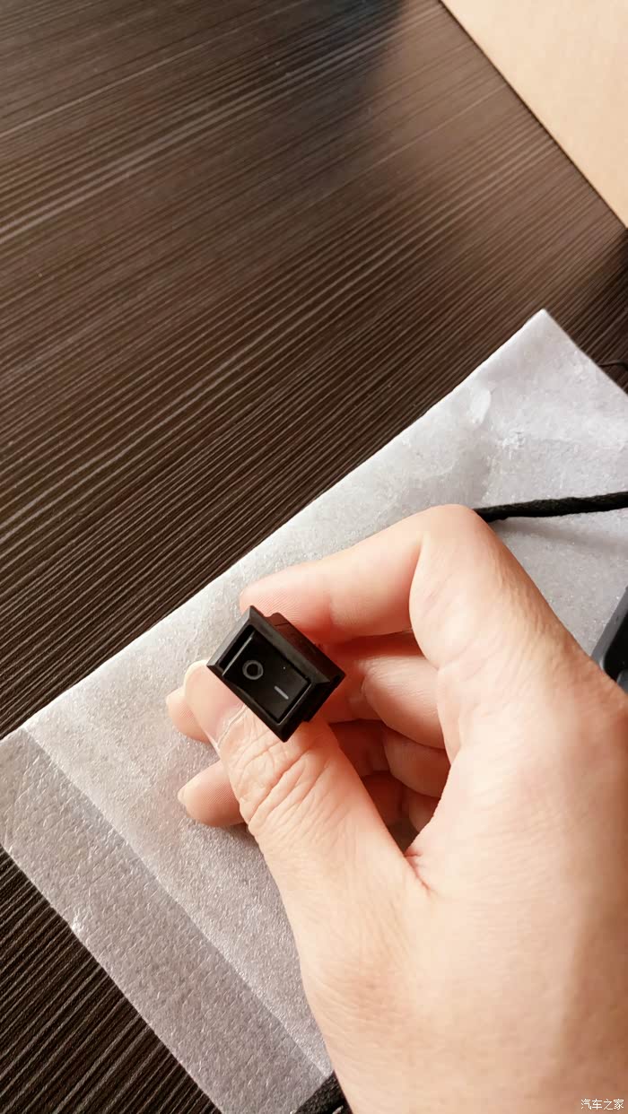 线路都接好后测试,正常无误后安装好,这是我加装上的控制开关,就是不锁车的情况下按一下这个开关,后视镜自动折叠,再按一下就展开。