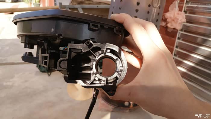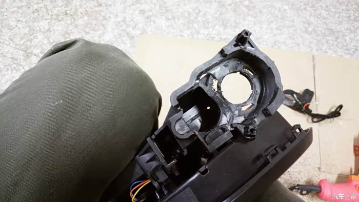 拆到这里我们已经能看到这个部件,就是安装电机的位置,有预留,但是没有空间,都是塑料做的造型填充,我们现在要做的就是掏空这个位置的塑料,留出空间好装上电机