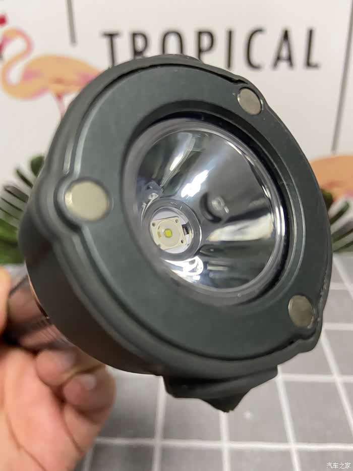 手柄处有12颗黄色的LED灯珠排列组合不停闪烁发出刺眼的强光作为警示,这个功能可以作为夜间使用三角警示牌的补充。