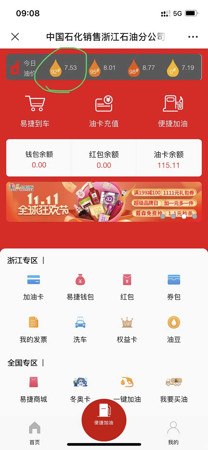 2021.11.11 /今日油价:92#7.53