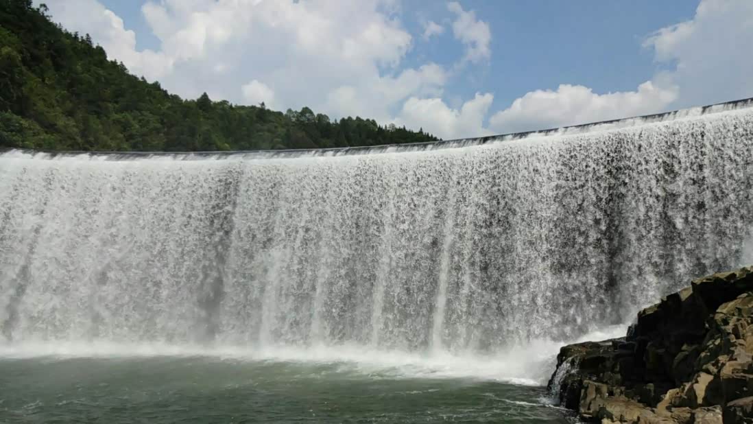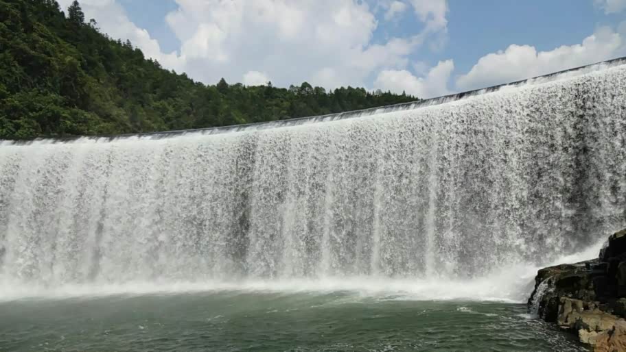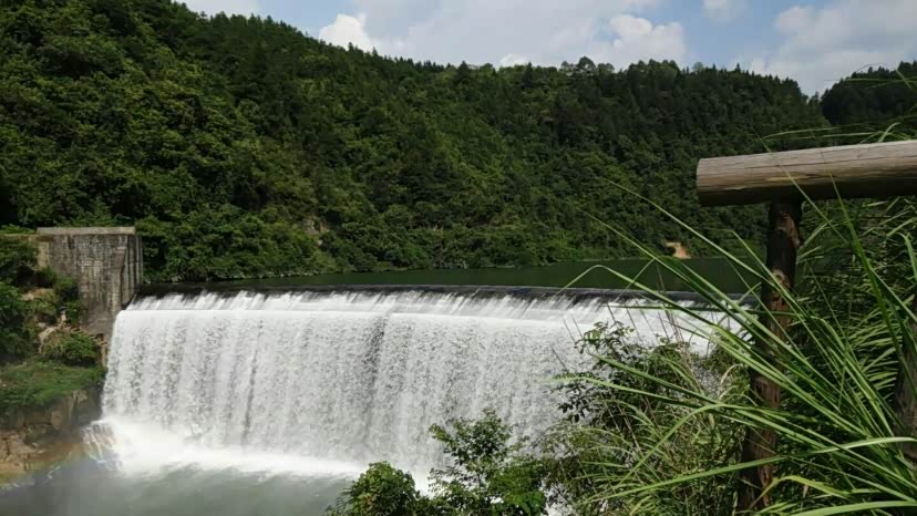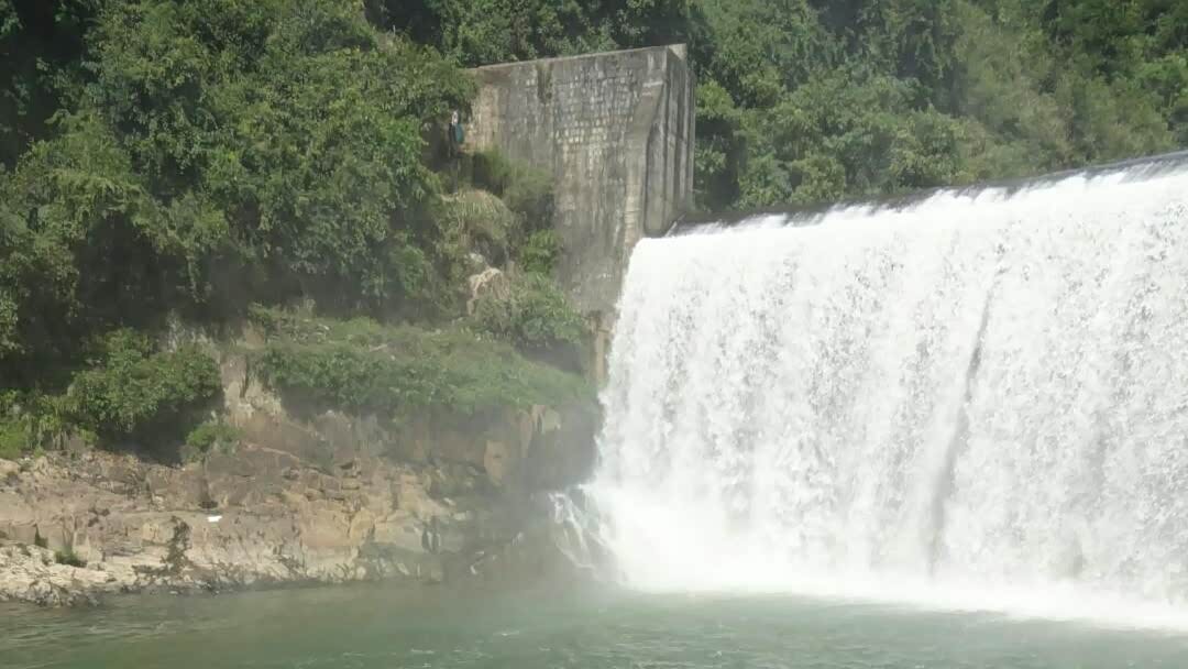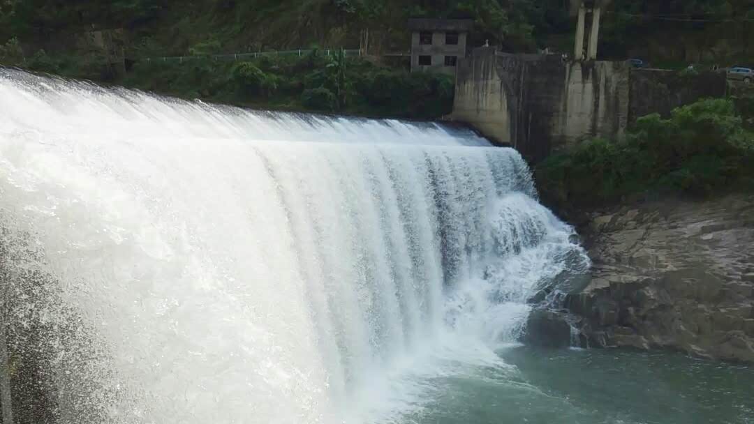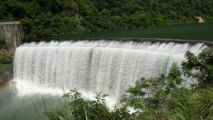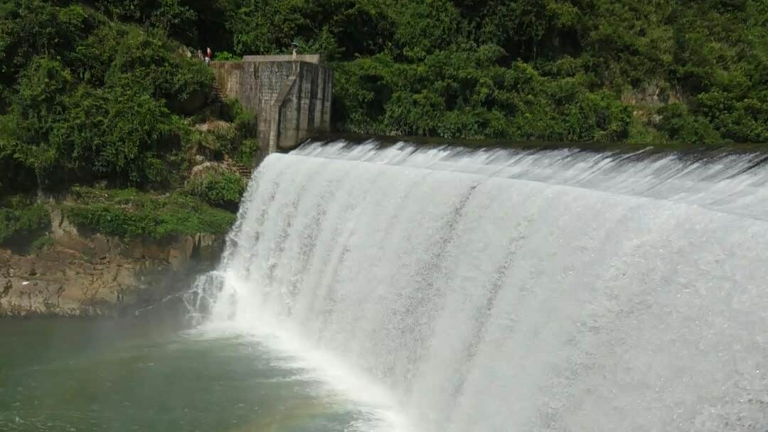 水库大坝,横卧在莲花山和里翁山之间,是一道亮丽的人文景点。从莲花山下到坝中人行道,观看八十米宽的瀑布,水流从坝上飞流直下,跌落潭中,形成奔涌的急流,拍岸而去,使人惊心动魄。