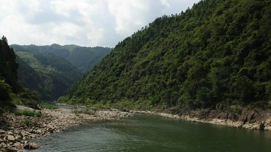 顺滩而下,拐一道急湾,便到呆谱渡口。呆谱渡口,江水碧透,波光粼粼。渡口旁有三十多株枫木古树,二十多栋木楼。这里是天柱、锦屏两县交界的重要渡口,也是兵家必争的要隘。