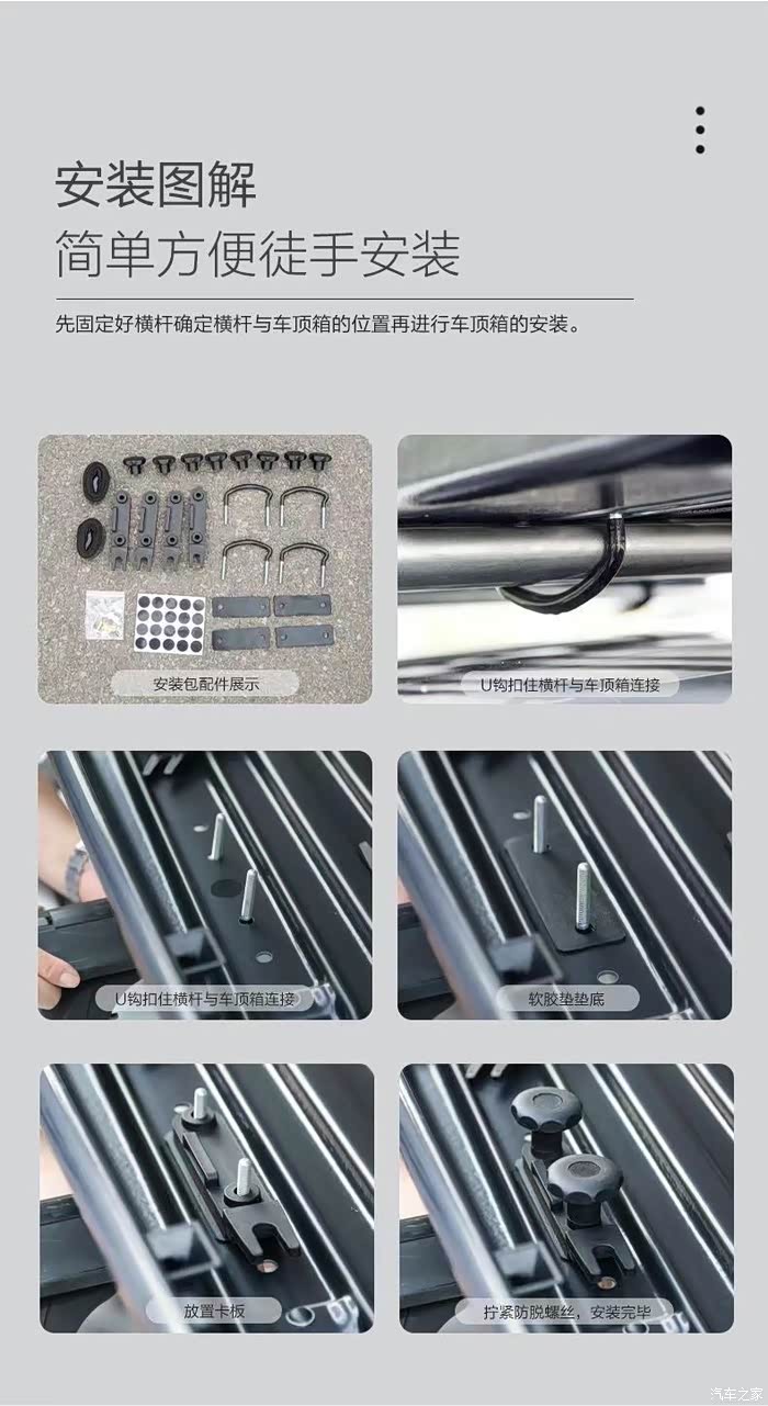 ?首先是安装横杆,因为瑞虎8plus自带车顶行李架,横杆直接能装上去不用打孔非常方便!