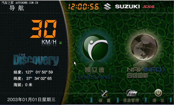 7、开机,按导航键,启动一机多图,点击数字速度表0为OFF,才能开启凯立德搜星。