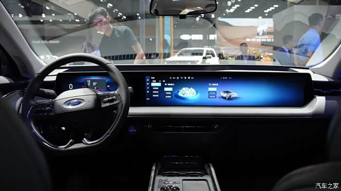 长安福特展台在1楼,顺路原则,先看了新蒙。这个车的空间非常nice,一进去就觉得宽敞,兄弟坐在主驾调好合适的位置后,我在后面还可以跷腿。后排的座椅也比较平整而且宽,对大腿的支撑性好。外观我俩都看上了的,就是年轻简洁的风格。