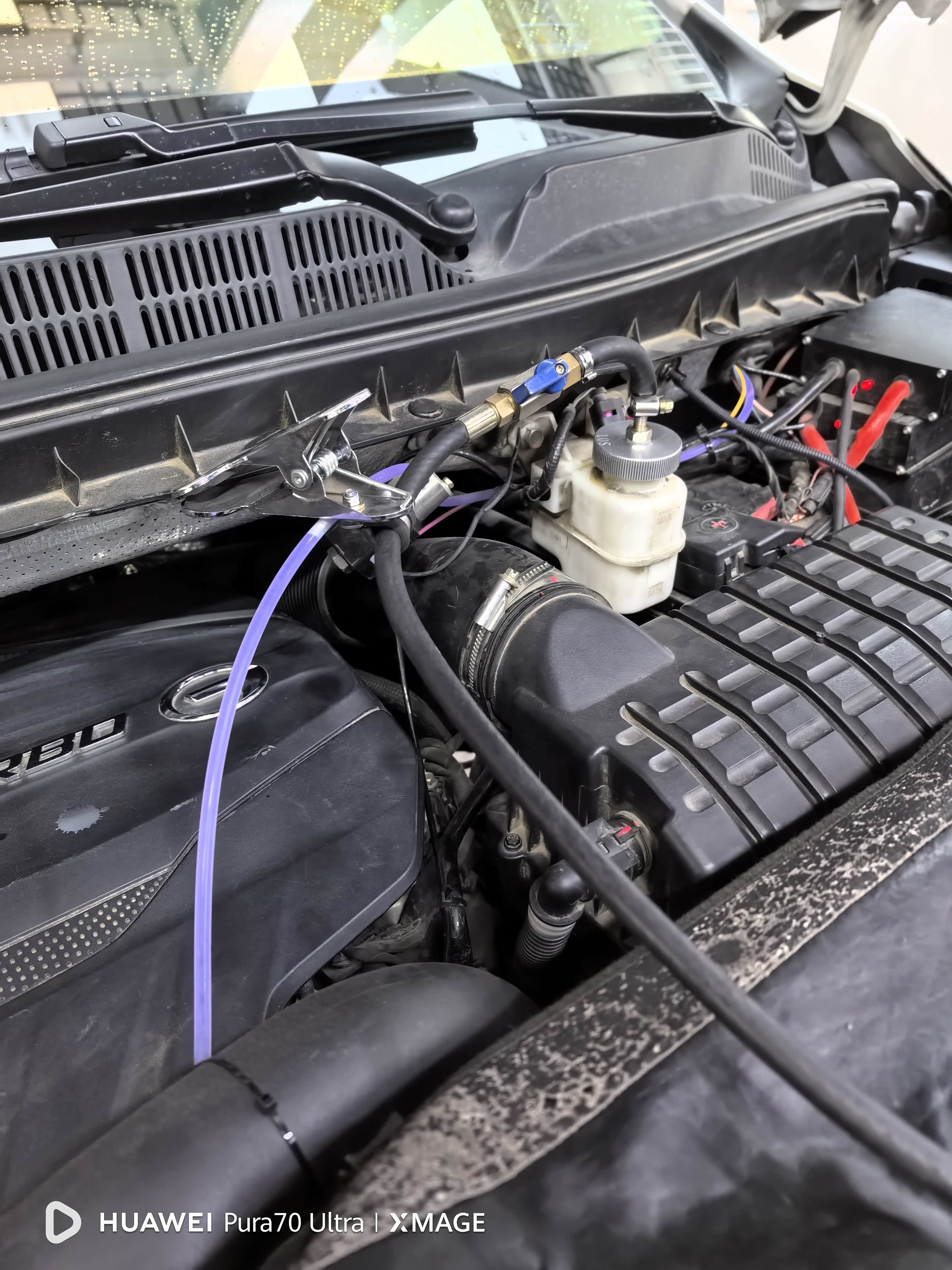 另外,最近还对变速箱风冷加装了电子风扇进行降温,对于像北京这种堵车路况来说更好的控制变速箱油温度。之前从水冷改风冷之后,车跑起来比如高速控温效果很好,在80度左右,但城里堵车加上40度的天气,20公里路程就得干到120度了,大部分情况都是到家110度左右,属于高温了。前段时间还导致管路的一个胶皮管爆掉变速箱油漏的只剩半升
