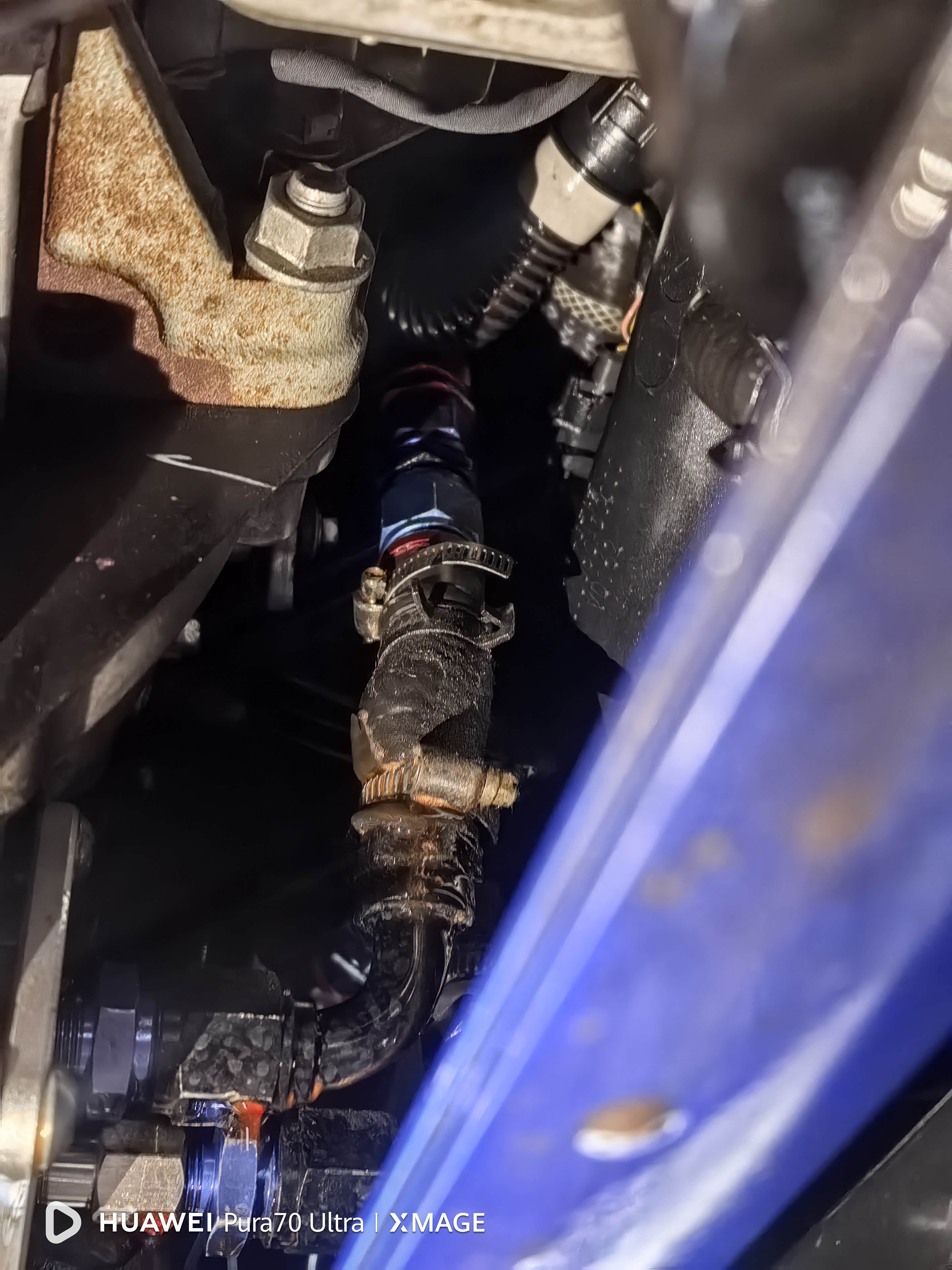 变速箱风冷当时接管子的时候加了一段软管,高温时间长了就爆掉了
