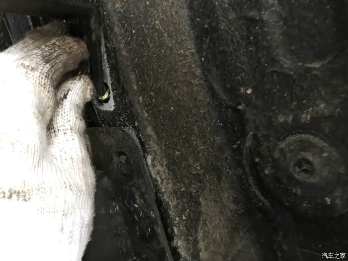 躺下继续作业吧,先把门板最下面那个黑色装饰板那螺丝拆掉,对就是这,膨胀卡扣就是装在这里的