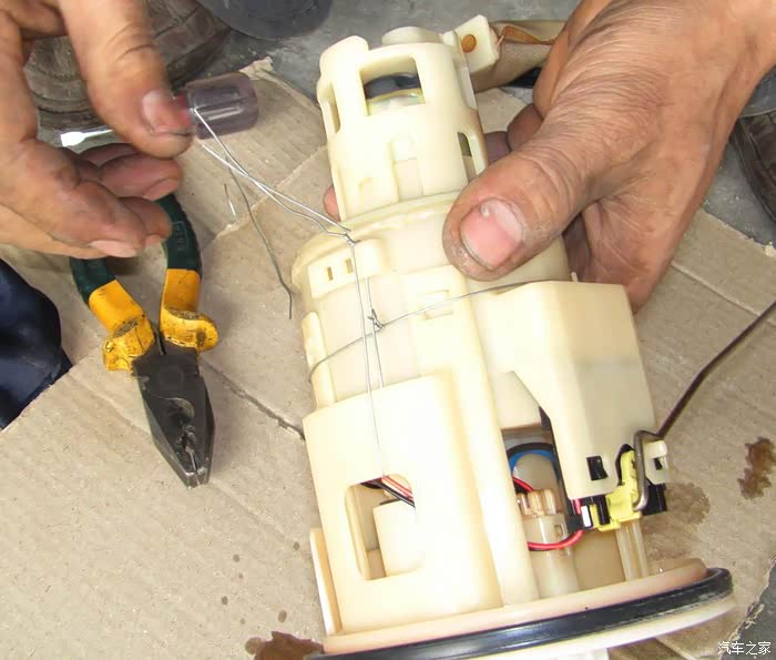 这是一个拆解燃油泵,在设计的时候电路不会在油液里。电路结构和油品是用塑料绝缘。双重保护