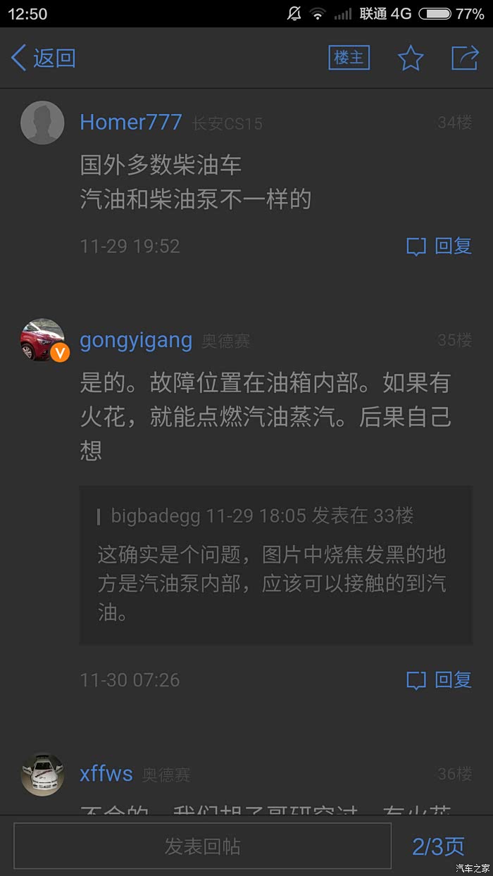 这位网友认为有火花会至燃烧,这是不可能的,上面已经做从物理学和油泵结构做了剖析。