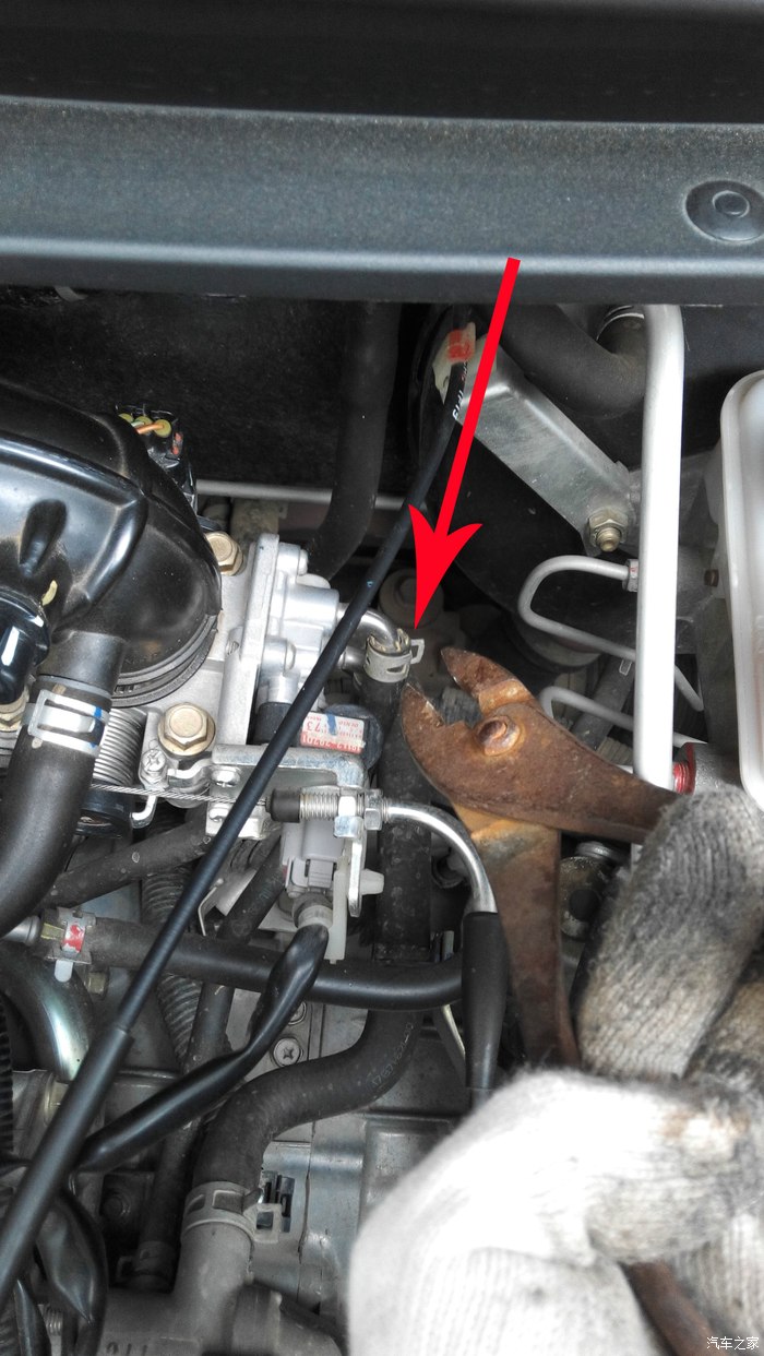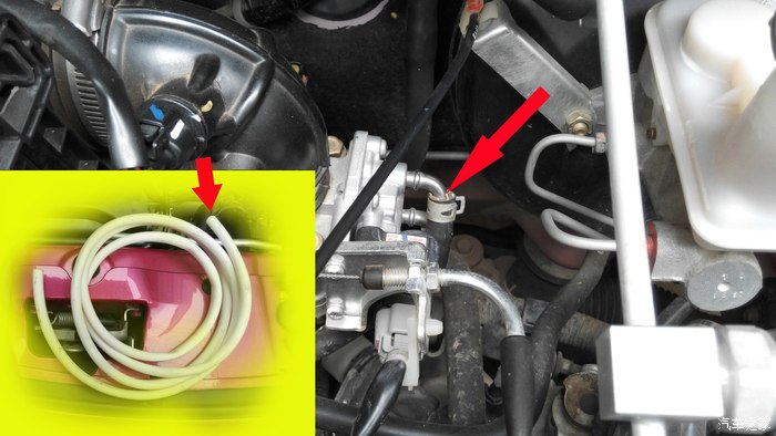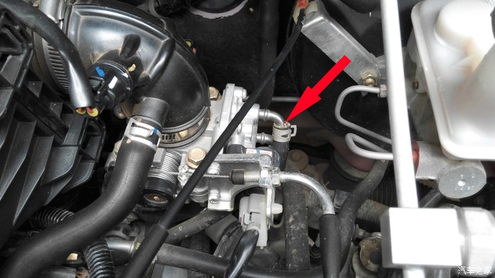 找到下图中的水管,在节气门旁边,一共有两根
